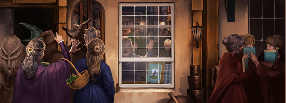 Harry and Hermione enter the Wizard Book Shop and reconnect with the Weasleys. The manager of Flourish and Blotts was a much-tired British wizard who took the brunt of teachers selection of required textbooks for their classes that turned out to be somewhat.