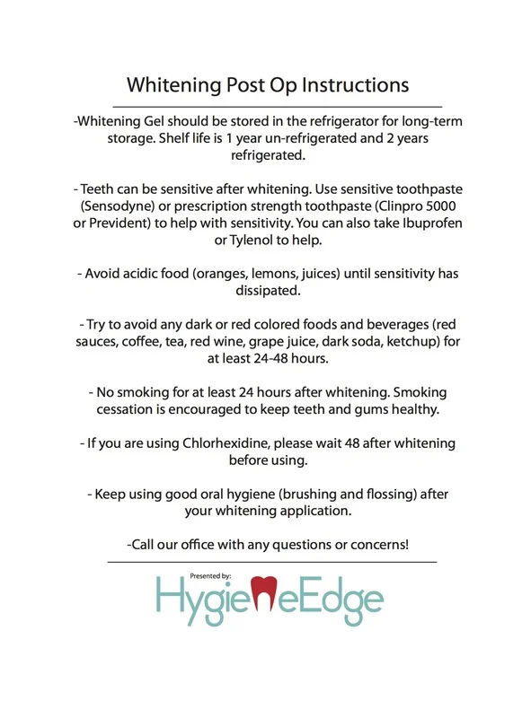 Youve just experienced a revolutionary. Whitening Post-op Instructions Congratulations. After-Care Instructions for In-Office Whitening.